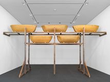 355 x 699.5 x 241 cm 139 3/4 x 275 3/8 x 94 7/8 in. Boat 1: 51.5 x 192.5 x 55.5 cm (signed and dated underneath: laib 99) oben mittig (20 1/4 x 75 3/4 x 21 7/8 in.) Boat 2: 52 x 187 x 56.5 cm (20 1/2 x 73 5/8 x 22 1/4 in.) oben links Boat 3: 51.5 x 188 x 51 cm (20 1/4 x 74 x 20 1/8 in.) oben rechts Boat 4: 51.5 x 167 x 53.5 cm (signed and dated underneath: laib 97) unten links Boat 5: 53.5 x 170 x 54.5 cm (signed and dated underneath: laib 99) unten rechts